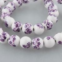 Фарфоровая бусина (porcelain) с фиолетовыми цветами (печатный узор). Рисунок может быть немного смазан (см. фото). Диаметр бусин - около 10 мм, диаметр отверстия - около 1.8 мм. Бусины могут немного отличаться по форме и размеру. Цена за низку из 13 шт.