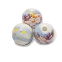 Фарфоровая бусина (porcelain) с розово-сиренево-желтыми цветами на голубом фоне. Цена за 1 шт.