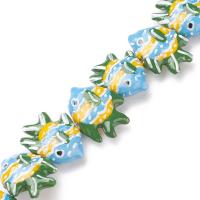 Фарфоровая бусина - коралловая рыбка ручной работы. Напоминает тропическую рыбу - бабочку. Бусины слеплены и расписаны вручную: могут отличаться по форме, рисунку и размеру. Размер отверстия около 1-2 мм. Оттенок может отличаться от фотографии и в разных поставках. Цена за 1 бусину.