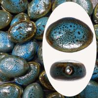 Крупная овальная керамическая бусина ручной работы. Бусина покрыта глазурью сине-зелено-коричневого цвета. Бусины могут немного отличаться по форме и размеру, рисунок на каждой бусине уникален. Диаметр отверстия - около 1.8 мм. Цена за 2 бусины.