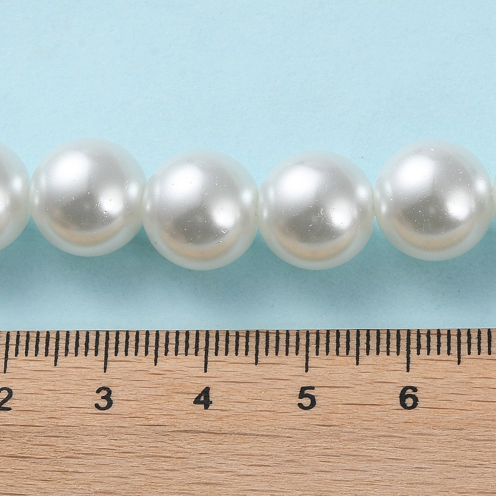 Крупный белый стеклянный жемчуг. Бусины могут немного отличаться по форме и размеру, быть слегка приплюснутыми у отверстия. На покрытии есть мелкие неровности и царапинки. Оттенок может немного отличаться от представленного на фото. Цена за низку 80 см, около 70 шт.