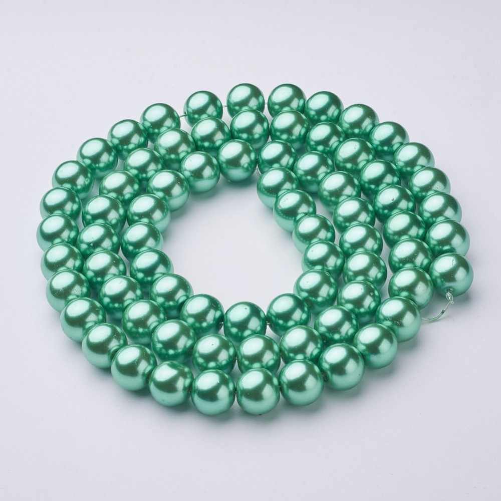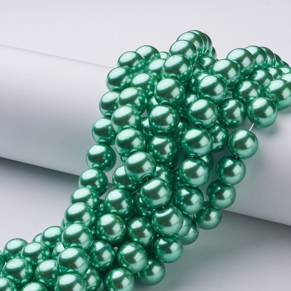 Стеклянные бусины с покрытием под жемчуг зеленого цвета с небольшим мятным отливом. Бусины могут немного отличаться по форме и размеру, быть слегка приплюснутыми у отверстия. Оттенок может немного отличаться от представленного на фото. Цена за низку 80 см, около 70 шт.