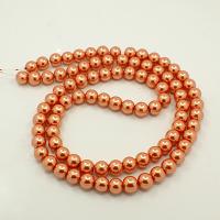 Стеклянные бусины с покрытием под жемчуг розовато-оранжевого цвета. Бусины могут немного отличаться по форме и размеру, быть слегка приплюснутыми у отверстия. Оттенок может немного отличаться от представленного на фото. Цена за низку 80 см, около 70 шт.