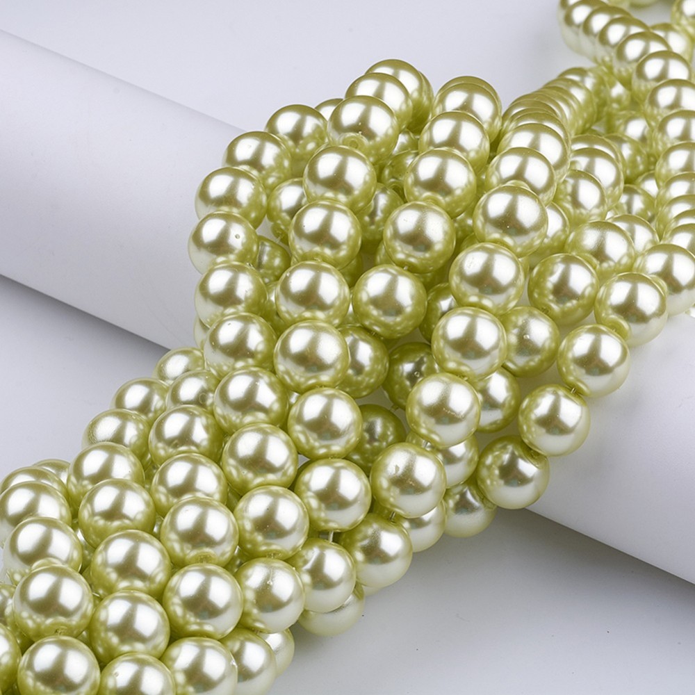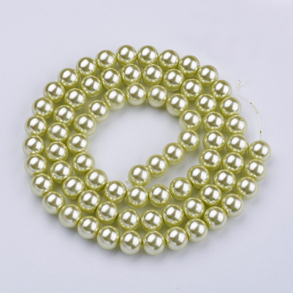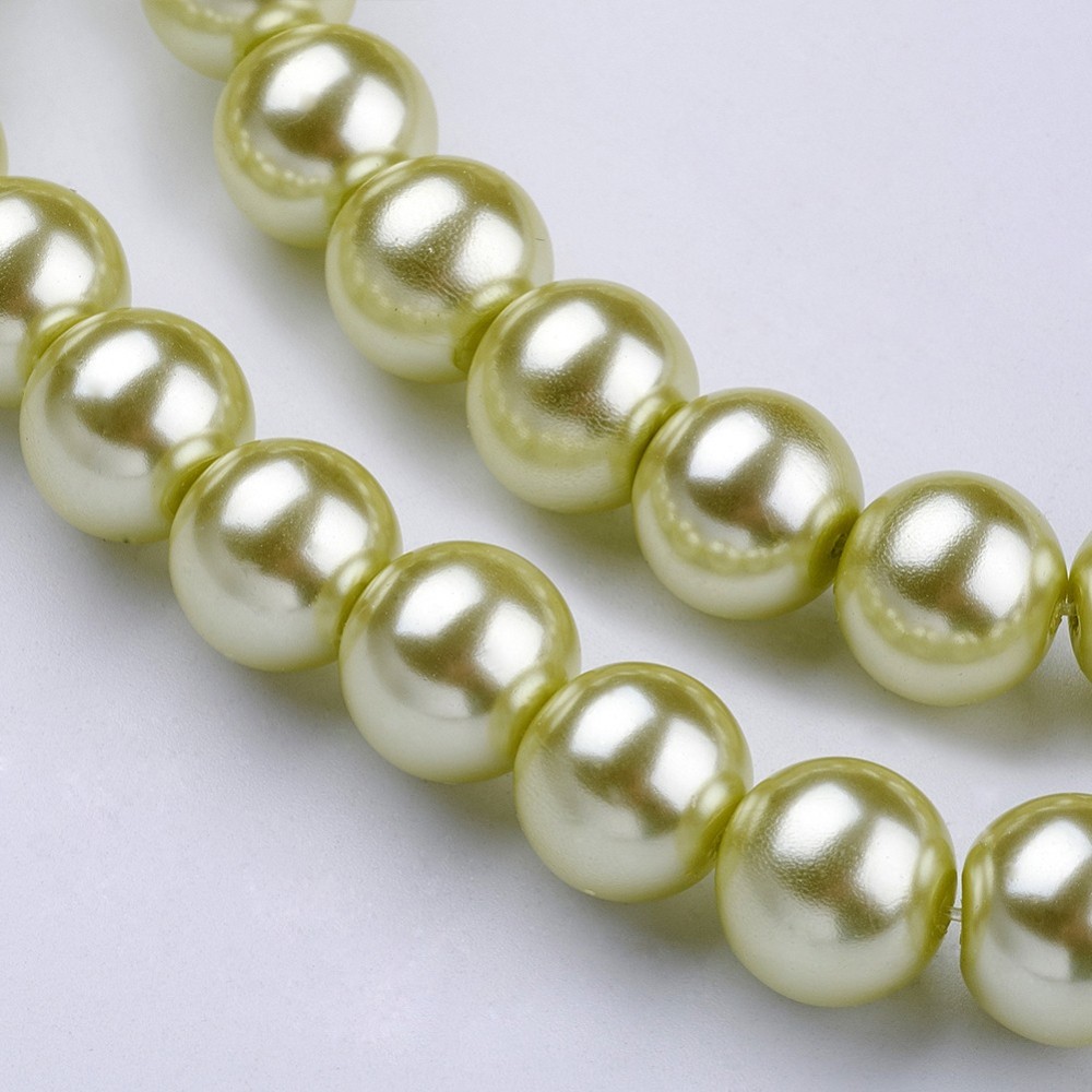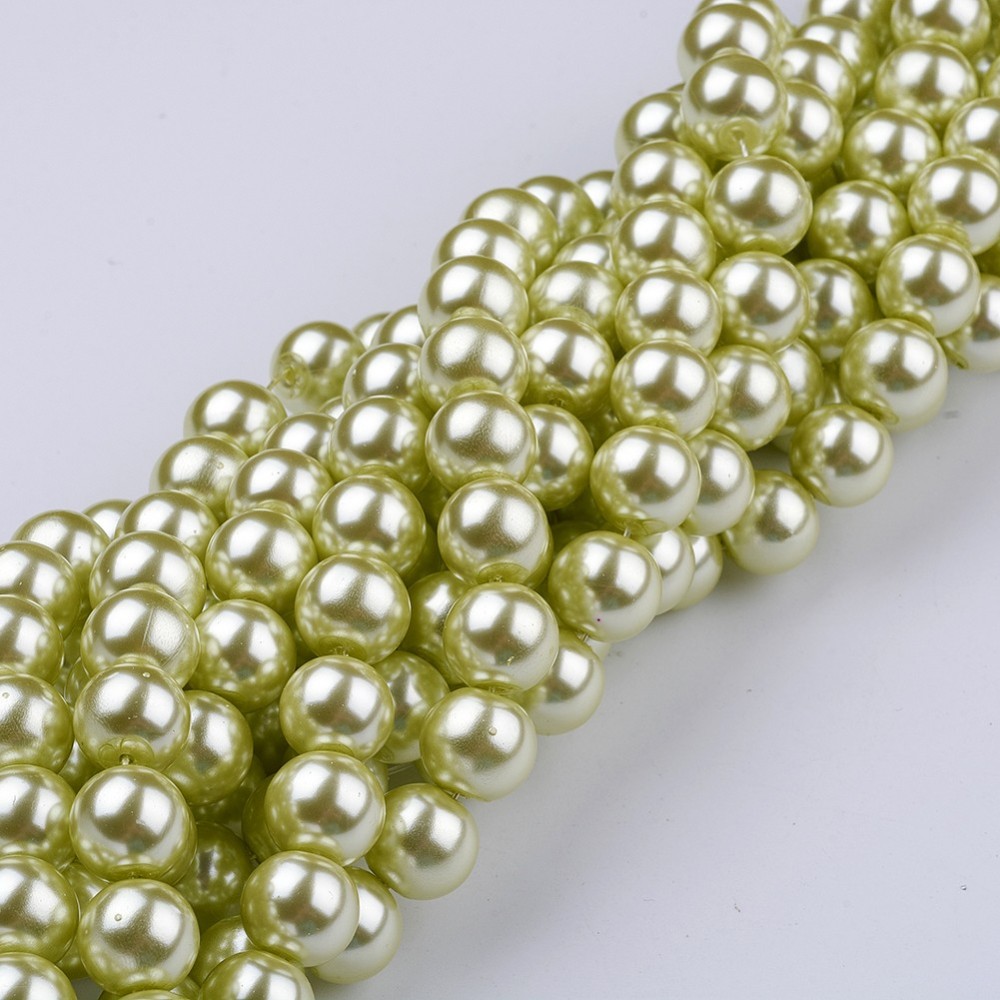 Стеклянные бусины с покрытием под жемчуг нежно-зеленого цвета. Бусины могут немного отличаться по форме и размеру, быть слегка приплюснутыми у отверстия. Оттенок может немного отличаться от представленного на фото. Цена за низку 80 см, около 70 шт.