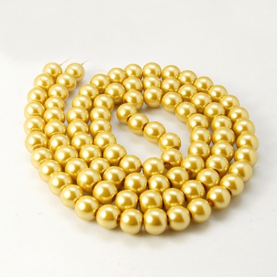 Стеклянные бусины с покрытием под жемчуг золотисто-желтого цвета. Бусины могут немного отличаться по форме и размеру, быть слегка приплюснутыми у отверстия. Оттенок может немного отличаться от представленного на фото. Цена за низку 80 см, около 70 шт.