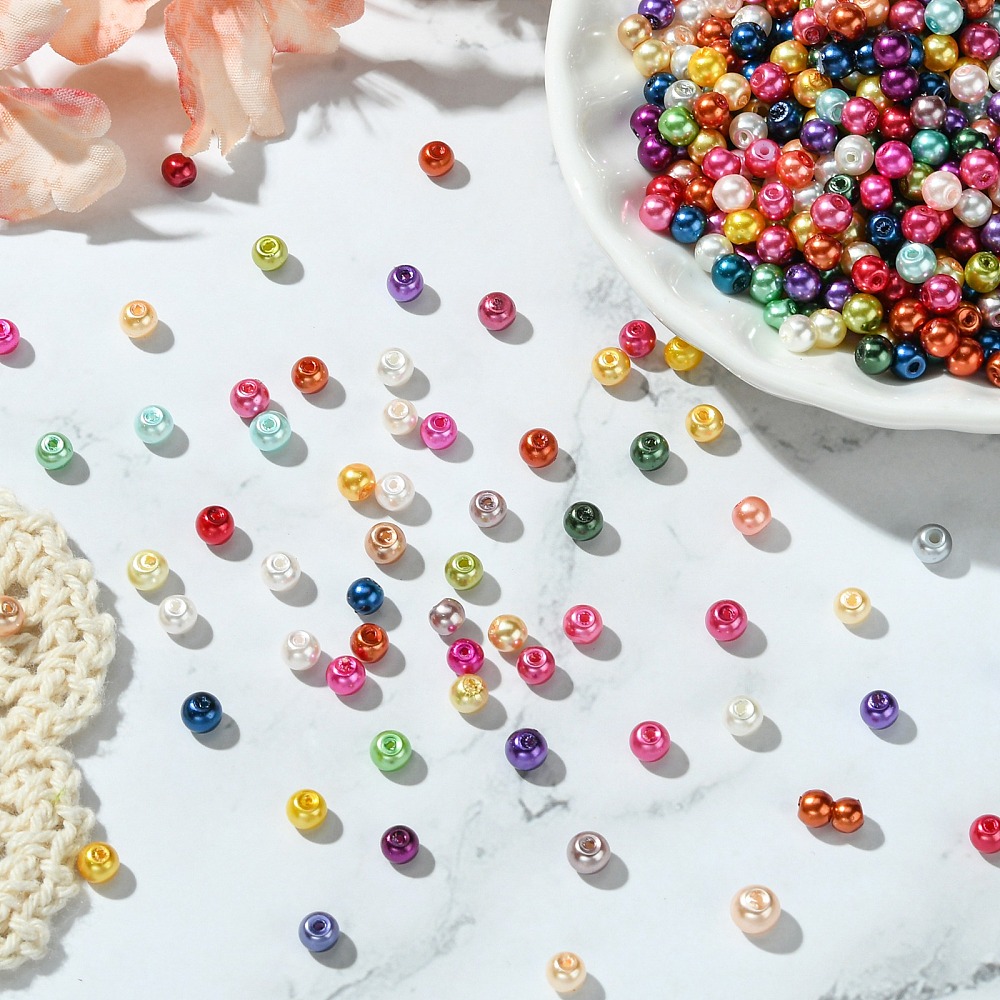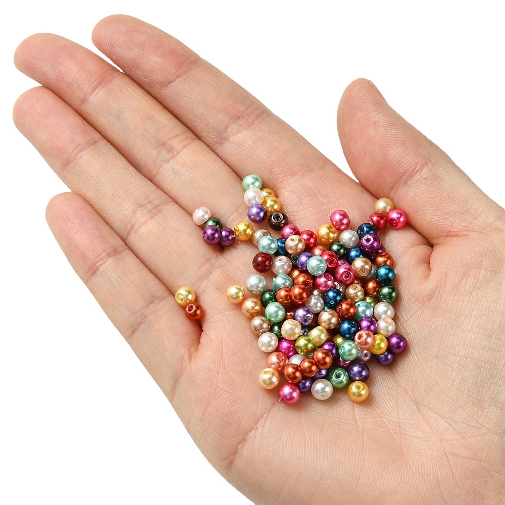 Бюджетные стеклянные бусины с покрытием под жемчуг, цветное ассорти. Бусины могут немного отличаться по форме и размеру, быть слегка приплюснутыми у отверстия. На покрытии возможны неровности. Оттенок в миксе может отличаться от фотографии - в наборе могут быть цвета, не представленные на фотографии и быть представлены не все цвета с фотографии. Диаметр отверстия около 1 мм. Цена за 50 грамм (около 510 шт, бусины фасуются без проверки на дефекты и без подбора по цвету).