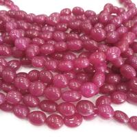 Бусины - овалы слегка неправильной формы из камня ручной огранки, гладкие. Натуральный рубин поделочного качества. Оттенок может отличаться от фотографии. Длина около 7-12 мм, ширина 6-10 мм, толщина 4-8 мм. Месторождение и обработка: Индия. Обработка камня: пропитка маслом (Oil Color Enhanced). Цена за низку из 24 бусин.