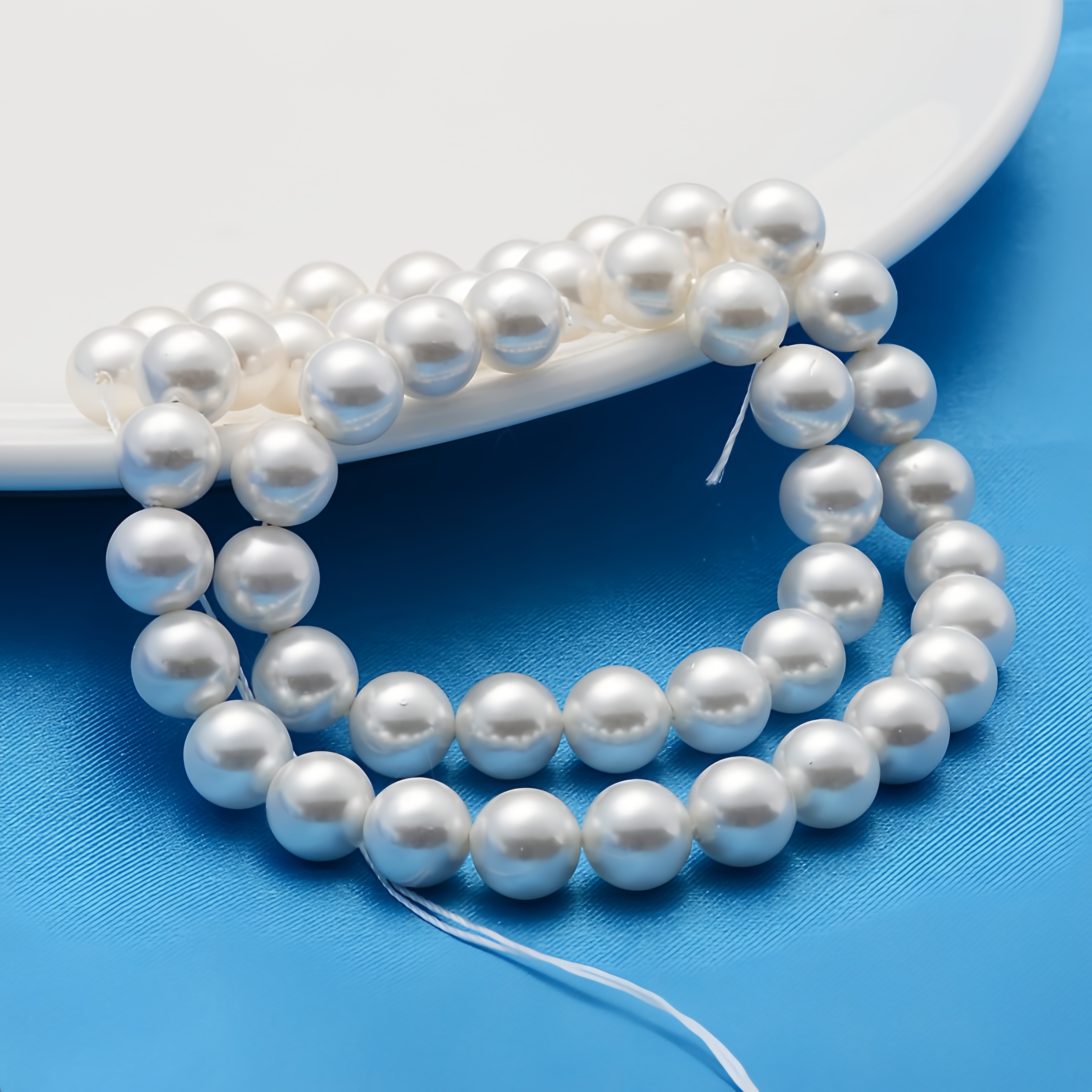 Бусины из ракушки с покрытием под жемчуг Майорка (Майолика). Оттенок может немного отличаться от фотографии. На покрытии возможны дефекты - неровности, царапинки, скошенные участки. Цена за низку длиной примерно 38 см (около 47 жемчужин). Низки формируются без проверки каждой бусины на дефекты.