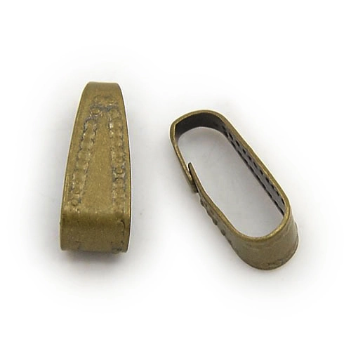 Защелкивающийся металлический держатель для подвесок или кулонов. Цвет бронзовый, оттенок может отличаться от фотографии и в разных поставках. Цена за 10 грамм (около 70 шт, бейлы фасуются на вес без проверки на дефекты).