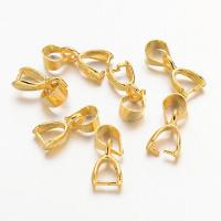 Держатель для кулонов (зажимной бейл). Подходит для бусин-бриолеток (бриолетов) и других бусин и подвесок с поперечным отверстием сверху. Общая длина 12-14 мм, для кулонов толщиной около 4 мм. Возможны небольшие заусенцы, неровности покрытия. Цена за 1 шт.