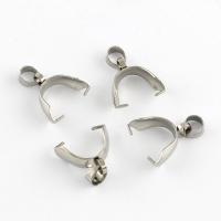 Не темнеющая фурнитура для бижутерии из нержавеющей стали. Держатель для кулонов (зажимной бейл) с подвижной петелькой. Подходит для бусин-бриолеток (бриолетов) и других бусин с поперечным отверстием сверху. Общая длина 18 мм, ширина - 5 мм. Внутренняя ширина петельки 3.5 мм, длина - 6 мм. Цена за 5 шт.