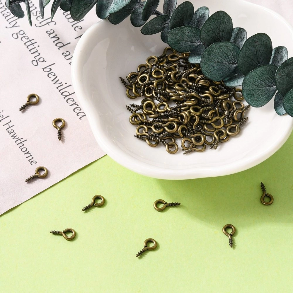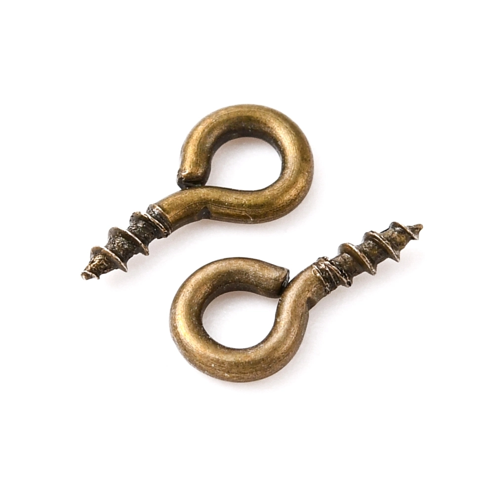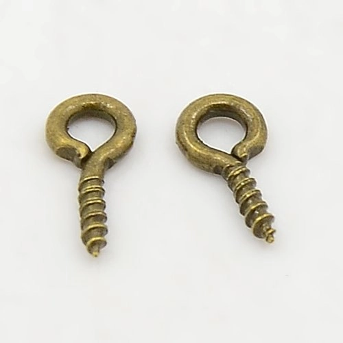 Штифт вкручивающийся,покрытие бронзового цвета. Общая длина 8.5 мм, диаметр петельки 4 мм, внутренний диаметр петельки 2 мм, толщина вкручиваемой части 1 мм. Используются в качестве держателей для полупросверленных бусин, изделий из дерева, керамики, полимерной глины. Для большей надежности при фиксации штифта можно использовать капельку супер-клея. Оттенок может отличаться от фотографии и в разных поставках. Цена за 5 грамм (около 65 штук, фасуются без проверки на дефекты).