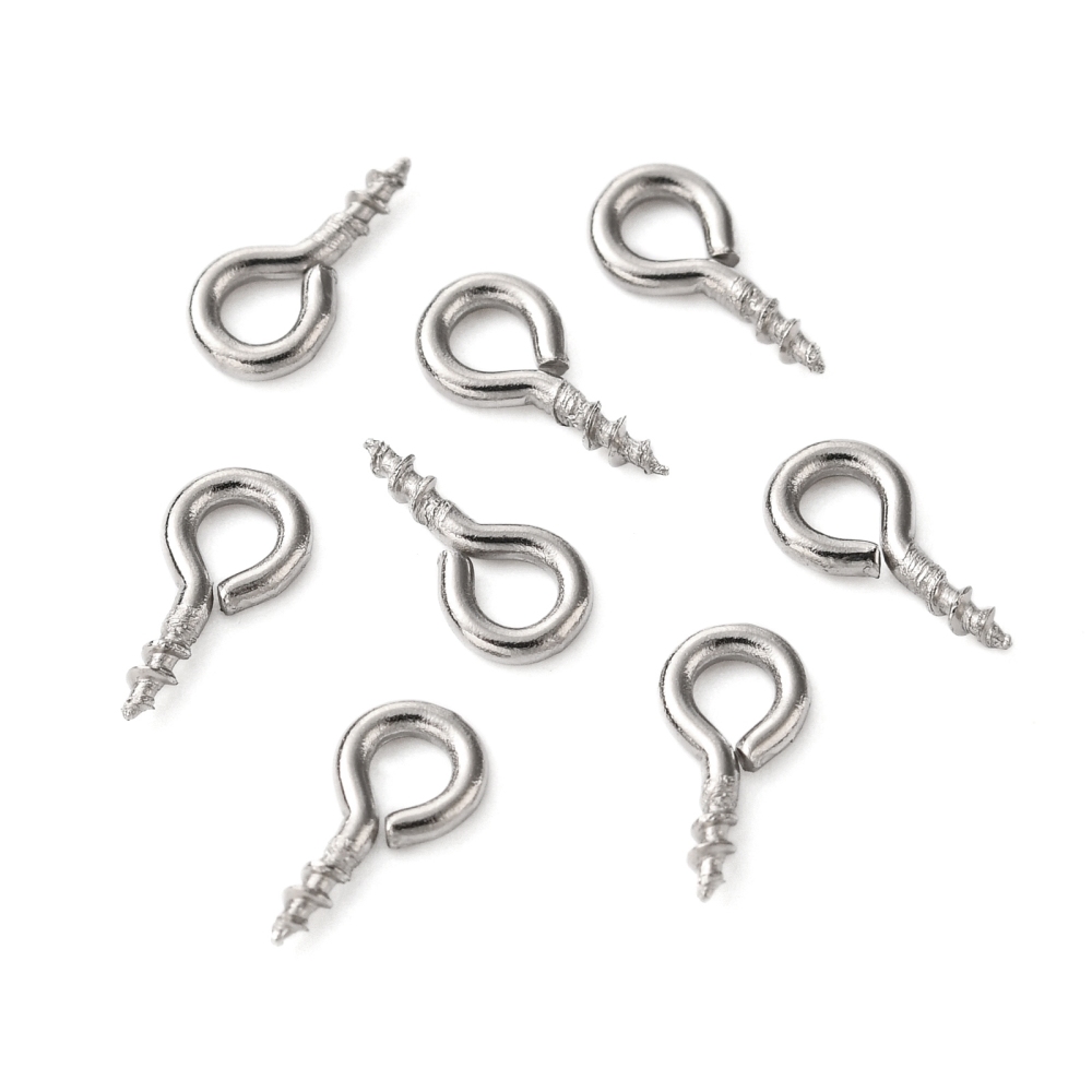 Вкручивающийся держатель (штифт с резьбой) с петелькой. Общая длина около 8 мм, внешний размер петельки около 4 мм, длина штырька - около 3 мм, диаметр штырька - около 1.3 мм. Штифт выполнен из нержавеющей стали марки 304 (не темнеет, не облезает). Оттенок может отличаться от фотографии и в разных поставках. Отлично подходит для полупросверленных бусин, изделий из полимерной глины, керамики, дерева. Цена за упаковку 3 грамма (около 39 штук, фасуются без проверки на дефекты).