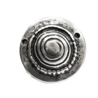 Односторонний декоративный элемент для создания украшений - выпуклый круг со спиральным узором и двумя отверстиями, серия под старину - Историческая коллекция. Может также использоваться как соединительный элемент (коннектор) или подвеска. Диаметр отверстий - около 2 мм. Качественная фурнитура для бижутерии из сплава ZAMAK (ЦАМ). Покрытие - серебро 999 пробы с чернением, оттенок может отличаться от фотографии. Размер у разных элементов может отличаться от заявленного на +-1.5 мм. Цена за 1 шт.