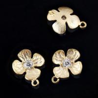 Элитная ювелирная фурнитура премиум-класса из Южной Кореи. Эффектный матовый позолоченный компонент для создания украшений - изящный цветок. Также напоминает четырехлистный клевер. Цветочек выпуклый, очень изящный. Лицевая сторона декорирована кристально-прозрачным стразом - фианитом (Cubic Zirconia– кубик циркония, CZ). Обе петельки разъемные, одна из них скрытая. Цветочек можно использовать как соединительный элемент и как подвеску. Материал - латунь, сверху матовая позолота (гальваническое напыление золото 16 карат). Оттенок может отличаться от фотографии и в разных поставках. На тыльной стороне возможны небольшие неровности. Производство: Южная Корея. Цена за 1 штуку.