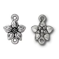 Соединительный элемент (коннектор) в форме цветочка, напоминающего жасмин (STAR JASMINE) с двумя петельками. Базовый материал - металлический сплав на основе олова, покрытие - гальваническое напыление серебром 999 пробы с чернением. Оттенок может отличаться от фотографии и в разных поставках. Качественная брендовая американская фурнитура компании Tierra Cast (Тьерра Каст, США). Цена за 2 шт. Артикул производителя: 94-3059-12