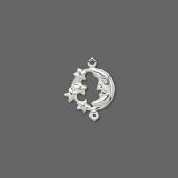 Двусторонний соединительный элемент в форме месяца со звездами. Базовый материал - латунь. Серебряное покрытие 925 пробы. Цена за 2 шт.