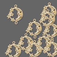 Соединительный элемент в форме месяца со звездами. Базовый материал - латунь. Материал - латунь с позолотой (покрытие - золото 18К (карат)). Оттенок может отличаться от фотографии и в разных поставках. Цена за 1 шт.