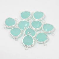 Коннектор в форме скругленного треугольника со вставкой из граненого ювелирного стекла, цвет голубой опал (амазонит, тиффани), оттенок может немного отличаться от фото. На просвет кристалл полупрозрачный. Можно использовать как соединительный элемент или подвеску. Петельки неразъемные. Цена за 1 шт.