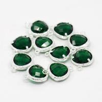 Коннектор в форме скругленного треугольника со вставкой из граненого ювелирного стекла, цвет изумруд. На просвет кристалл более светлый. Можно использовать как соединительный элемент или подвеску. Петельки неразъемные. Цена за 1 шт.