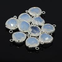 Коннектор в форме скругленного треугольника со вставкой из граненого ювелирного стекла, цвет белый опал (лунный камень). На просвет кристалл полупрозрачный. Можно использовать как соединительный элемент или подвеску. Петельки неразъемные. Цена за 1 шт.