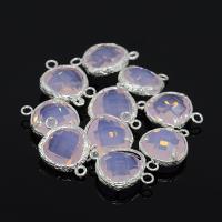 Коннектор в форме скругленного треугольника со вставкой из граненого ювелирного стекла, цвет розовый опал (розовый лунный камень). На просвет кристалл полупрозрачный. Можно использовать как соединительный элемент или подвеску. Петельки неразъемные. Цена за 1 шт.