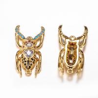 Элитная ювелирная фурнитура премиум класса - Милано люкс (Milano Lux). Изящный, качественно сделанный компонент для украшений - коннектор (соединительный элемент) стилизованный жук-усач. Может использоваться также как пришивной декоративный элемент с двумя петельками. Отлично подходит для браслетов (в том числе в стиле "красная нить"), сережек и колье. Коннектор декорирован черными, малиновыми и голубыми стразами - фианитами (Cubic Zirconia– кубик циркония, CZ, цирконы), по центру два кристально-прозрачных фианита покрупнее. Материал - латунь, сверху покрытие золотого цвета. Цена за 1 штуку.