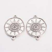 Плоский двусторонний коннектор (соединительный элемент) неправильной формы с узором в виде стилизованного солнышка (с ацтекским орнаментом). Базовый материал - бижутерный металлический сплав, покрытие - серебристое с чернением. Оттенок может отличаться от фотографии и в разных поставках. Цена за 1 шт.