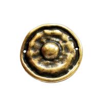 Односторонний декоративный элемент для создания украшений - слегка изогнутый фактурный круг с двумя отверстиями, напоминающий старинный щит. Диаметр отверстий - около 1.8 мм. Серия под старину - Историческая коллекция. Может также использоваться как соединительный элемент (коннектор) или подвеска. Качественная фурнитура для бижутерии из сплава ZAMAK (ЦАМ). Покрытие - бронза с чернением, оттенок может отличаться от фотографии. Размер у разных элементов может отличаться от заявленного на +-1 мм. Цена за 1 шт.
