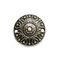 Односторонний декоративный элемент для создания украшений - слегка выпуклый круг с орнаментом (Стилизованное Солнце) и двумя отверстиями, серия под старину - Историческая коллекция. Может также использоваться как соединительный элемент (коннектор) или подвеска. Отлично смотрится в качестве центрального элемента в браслетах и колье. Диаметр отверстий - около 3 мм. Качественная фурнитура для бижутерии из сплава ZAMAK (ЦАМ). Покрытие - серебро 999 пробы с чернением, оттенок может отличаться от фотографии. Размер у разных элементов может отличаться от заявленного на +-1 мм. Цена за 2 шт.