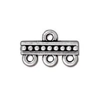 Изящный двусторонний коннектор - переходник с трех на одну нить, с точечным узором. Удобно использовать в качестве концевика для многорядных украшений. Базовый материал - металлический сплав на основе олова, покрытие - гальваническое напыление серебром 999 пробы с чернением. Оттенок может отличаться от фотографии и в разных поставках. Качественная брендовая американская фурнитура компании Tierra Cast (Тьерра Каст, США). Артикул производителя: 94-3055-12. Цена за 2 шт.