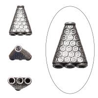 Двусторонний переходник с трех на одну нить с геометрическим узором. Имеет форму плоского конуса. Удобно использовать в качестве концевика для многорядных украшений. Расстояние между отверстиями - 5 мм, диаметр отверстий - около 2.9 мм. Производство - Индия. Цена за 2 шт.