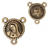 Слегка выпуклый двусторонний соединительный элемент Our Lady с 2 петельками сверху и 1 снизу. С одной стороны изображена Дева Мария (Мадонна), с другой - роза. Подходит для четок Розарий и сотуаров с кисточками. Фурнитура производства ТьерраКаст (TierraCast США). Цена за 1 шт. Артикул производителя: 94-3131-26