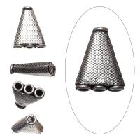 Двусторонний переходник с трех на одну нить с геометрическим узором. Имеет форму плоского конуса. Удобно использовать в качестве концевика для многорядных украшений. Расстояние между отверстиями - 5 мм, диаметр отверстий - около 3 мм. Производство - Индия. Цена за 2 шт.