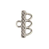 Крупный односторонний посеребренный переходник с трех на одну нить. Удобно использовать в качестве концевика для многорядных украшений. Оттенок может отличаться от фотографии и в разных поставках. Чернение может быть неравномерным, не таким насыщенным, как на фотографии. Цена за 1 шт.