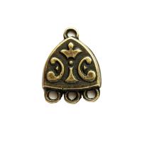 Односторонний декоративный элемент для создания украшений - стилизованный треугольник с восточным (тюркским) орнаментом, с тремя петельками с одной стороны и одной петелькой с другой, серия под старину - Историческая коллекция. Может также использоваться как соединительный элемент (коннектор, линк) или подвеска. Отлично подойдет для серег в этническом (национальном) стиле и как концевик для многорядных браслетов или колье. Диаметр отверстий - около 2.8 мм. Качественная фурнитура для бижутерии из сплава ZAMAK (ЦАМ). Покрытие - бронза с чернением, оттенок может отличаться от фотографии. Размер у разных элементов может отличаться от заявленного на +-1 мм. Цена за 1 шт.