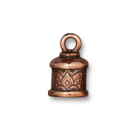 Крупные концевики с петелькой. Дизайн TEMPLE. Используются как колпачки для шнуров с круглым сечением. Внутренний размер - около 6 мм. Производство Тьерра Каст. Артикул производителя: 94-5851-18. Цена за пару.