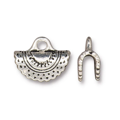 Узорные концевики-зажимы для ленты или плоского кожаного шнура шириной до 15 мм. Диаметр отверстия у петельки около 2 мм. Производство - американская компания Tierra Cast (Тьерра Каст, США). Оттенок может отличаться от фотографии и в разных поставках. Артикул производителя: 94-3228-12. Цена за пару.
