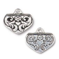 Узорные концевики-зажимы с объемными деталями в форме цветка и завитков с одной стороны и прорезанными деталями цветка и завитков с другой стороны. Подойдут для ленты, плоского кожаного шнура или плоского бисерного браслета шириной примерно до 17 мм. Не подходит для тонких лент и шнуров. Дизайн Scrollwork. Диаметр отверстия у петельки около 2,5 мм. Размеры могут немного отличаться от заявленного. Базовый материал - металлический сплав на основе олова, покрытие - гальваническое напыление серебром 999 пробы с чернением. Оттенок может отличаться от фотографии и в разных поставках. Качественная брендовая американская фурнитура компании Tierra Cast (Тьерра Каст, США). Артикул производителя: 94-3238-12. Цена за пару.