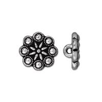 Декоративная металлическая пуговица с петелькой (на ножке). Дизайн CZECH ROSETTE (чешская розочка). Диаметр отверстия около 2 мм. Производство Тьерра Каст. Оттенок может отличаться от фотографии и в разных поставках. Данные пуговицы декоративные, не подходят для изделий, подвергающихся стирке. Цена за 2 шт. Артикул производителя: 94-6544-12