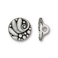Декоративная металлическая пуговица с петелькой (на ножке). Дизайн - чешский круг (CZECH ROUND), напоминает папоротник. Диаметр отверстия около 2 мм. Пуговица отлично будет смотреться в качестве застежки на браслете чан лу и других плетеных браслетах или колье. Производство Тьерра Каст. Данные пуговицы декоративные, не подходят для изделий, подвергающихся стирке. Цена за 1 шт. Артикул производителя: 94-6588-12