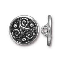 Декоративная металлическая пуговица с петелькой (на ножке). Дизайн TRISKELE (кельтский символ Трискелион). Диаметр отверстия около 2 мм. Производство Тьерра Каст. Оттенок может отличаться от фотографии и в разных поставках. Данные пуговицы декоративные, не подходят для изделий, подвергающихся стирке. Цена за 1 шт. Артикул производителя: 94-6566-12