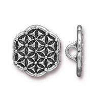 Декоративная металлическая пуговица с петелькой (на ножке). Дизайн FLOWER OF LIFE (цветок жизни). Диаметр отверстия около 2 мм. Производство Тьерра Каст. Данные пуговицы декоративные, не подходят для изделий, подвергающихся стирке. Цена за 1 шт. Артикул производителя: 94-6570-12