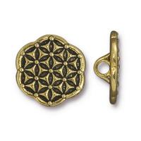 Декоративная металлическая пуговица с петелькой (на ножке). Дизайн FLOWER OF LIFE (цветок жизни). Диаметр отверстия около 2 мм. Производство Тьерра Каст. Данные пуговицы декоративные, не подходят для изделий, подвергающихся стирке. Цена за 1 шт. Артикул производителя: 94-6570-26