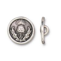 Декоративная металлическая пуговица с петелькой (на ножке). Дизайн Thistle (Чертополох). Диаметр отверстия около 2 мм. Базовый материал - бижутерный металлический сплав на основе олова, покрытие - гальваническое напыление серебром 925 пробы с чернением. Оттенок может отличаться от фотографии и в разных поставках. Качественная брендовая американская фурнитура от компании Tierra Cast (ТьерраКаст, США). Данные пуговицы декоративные, не подходят для изделий, подвергающихся стирке. Цена за 1 шт. Артикул производителя: 94-6607-12.