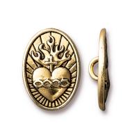 Декоративная металлическая пуговица с петелькой (на ножке), дизайн Sacred Heart, с изображением Святейшего Сердца Иисуса (также называется Пресвятое Сердце Иисуса Христа или Священное Сердце, the sacred heart of Jesus), в католицизме символизирует безграничную любовь Бога к человечеству. Размер отверстия около 3*2 мм. Базовый материал - металлический сплав на основе олова, покрытие - гальваническое напыление золотом 22К с чернением. Оттенок может отличаться от фотографии и в разных поставках. Производство Тьерра Каст. Артикул производителя: 94-6609-26. Данные пуговицы декоративные, не подходят для изделий, подвергающихся стирке. Цена за 1 шт.
