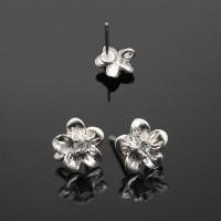 Качественная корейская фурнитура класса люкс. Основы для серег-гвоздиков (пуссеты) - изящные цветочки с фианитами и скрытой петелькой. Декоративная часть выполнена из латуни, покрыта матовым родием. Гвоздик из серебра: довольно гибкий и может быть покрыт патиной. В комплекте заглушки. Цена за пару.