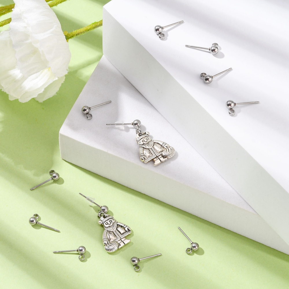Основа для серег - гвоздиков с шариком 4 мм и петелькой, изготовлены из нержавеющей стали (марка 304: используется в пищевой промышленности, не окисляется). Продаются без застежек. Оттенок может отличаться от фотографии и в разных поставках. Цена за 5 пар.