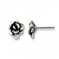 Изящные качественные основы для серег-гвоздиков (пуссеты) с цветком (каменной розой (вид суккулентов)) и петелькой. Продаются без застежек. Гвоздик из титана (без покрытия, гипоаллергенный), платформа из пьютера. Сверху гальваническое напыление cеребром с чернением. Производство Тьерра Каст (США). Артикул производителя: 94-1085-12. Цена за пару.