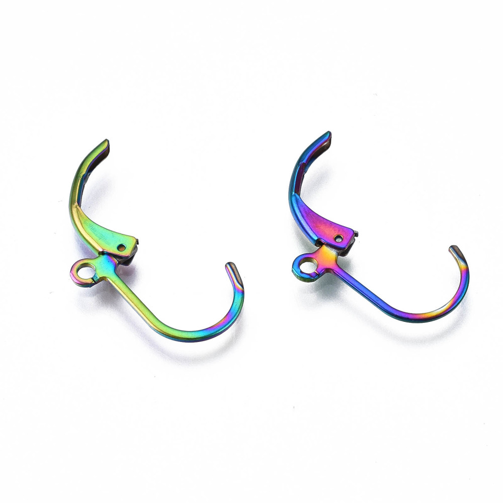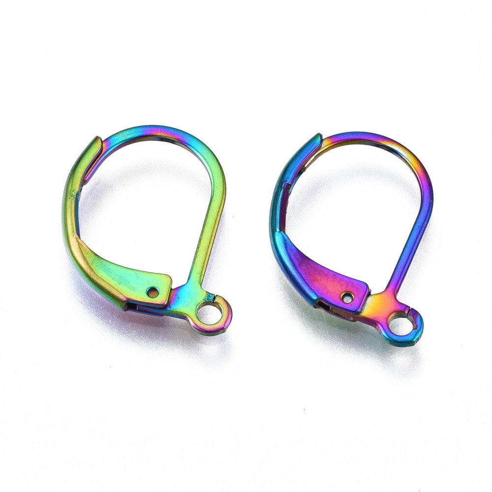 Яркие, эффектные основы для серег из нержавеющей стали с радужным покрытием. Закрытые швензы классической формы. Тип швензы - французский замок. Сделаны из гипоаллергенной нержавеющей стали марки 304. Оттенок может отличаться от фотографии и в разных поставках. Цена за 5 пар.